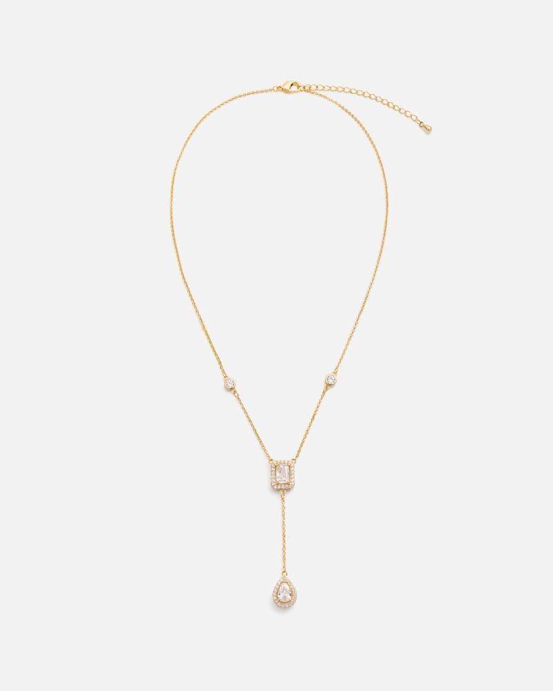 السلسال باللون الذهبي بتصميم حلي متدلية بأناقة و مرصعه بفصوص الزركون البراقة