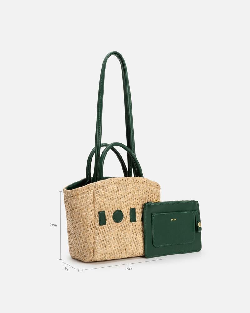 شنطة نسائية مميزة باللون البيج والأخضر