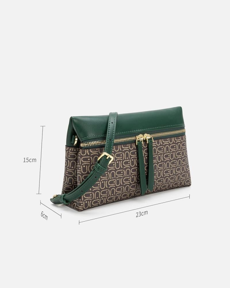 • شنطة من الجلد الناعم و المنقوش بشعار الماركة بلون أخضر