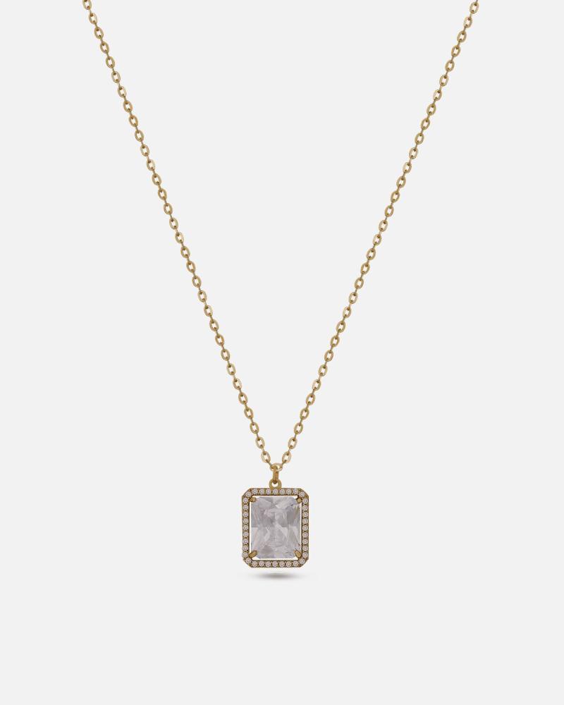 • سلسال بتصميم حلية بشكل هندسي مرصعه ببفصو الزركون وبحجر زركون لامع